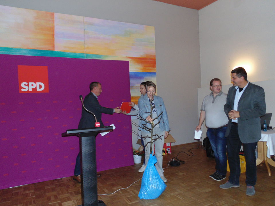 Da die langjährige stellvertretende Kreisvorsitzende Sabine Kaspereit aus Wengelsdorf ihren Wohnsitz aus dem Burgenlandkreis verlegt, war zugleich eine Nachwahl für einen der Stellvertreter vorzunehmen. Zu ihrem Nachfolger wurde mit großer Mehrheit der Weißenfelser Ortsvereinsvorsitzende Martin Geppert gewählt. Als Erinnerung überreichte der Kreisvorsitzende Rüdiger Erben einen Apfelbaum, der Sabine Kaspereit in ihrer neuen Heimat Karlsruhe an die Zeit in der SPD Burgenlandkreis erinnern soll.